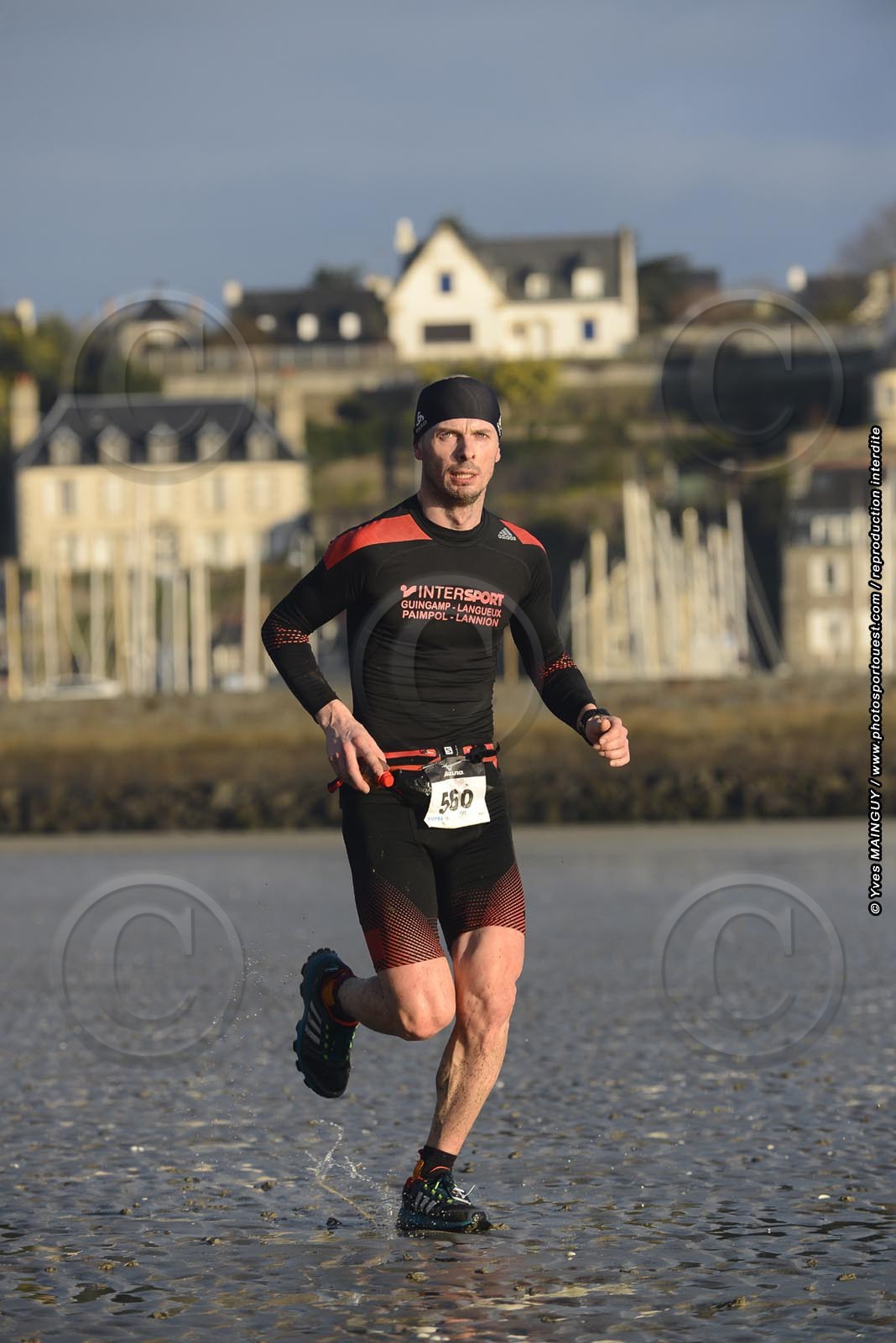 Alexandre NAULLEAU (9° du 45km). Passage du 45km sur la plage de la Banche à Binic. TRAIL GLAZIG 2015, 45 et 25km. 14° edition. Plourhan (22), le dimanche 15 février 2015. Photo: © Yves MAINGUY